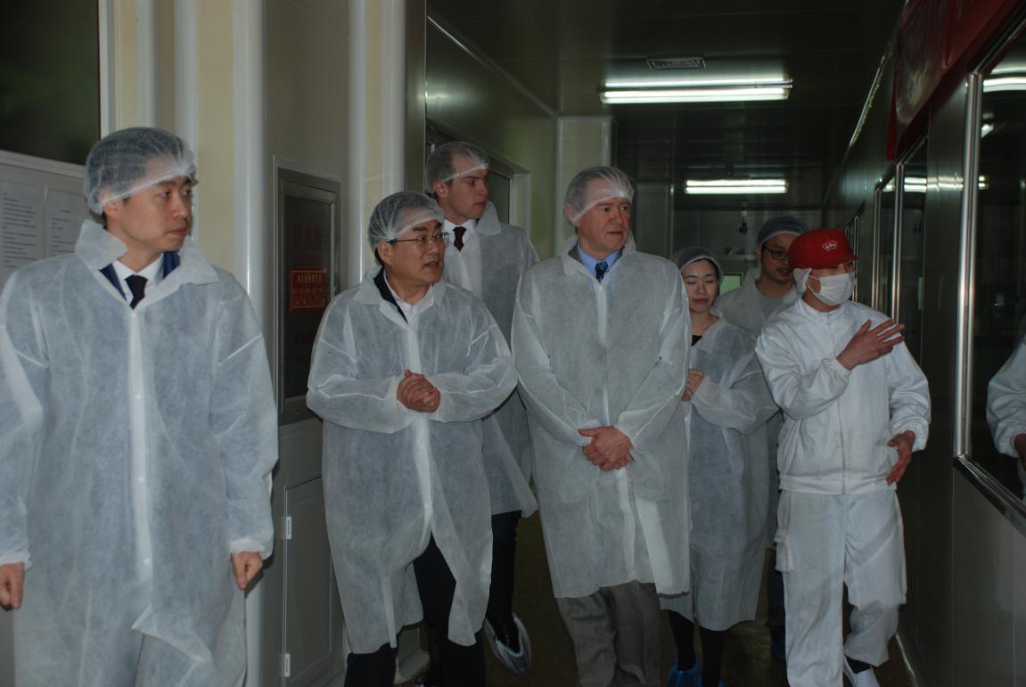 大衛(wèi)先生先與稻香村集團董事長周廣軍一同參觀了生產(chǎn)車間,工作人員向其詳細介紹了稻香村集團十萬級空氣凈化生產(chǎn)車間與產(chǎn)品全方位透明化無菌生產(chǎn)技術(shù),確保食品安全與最佳口感。