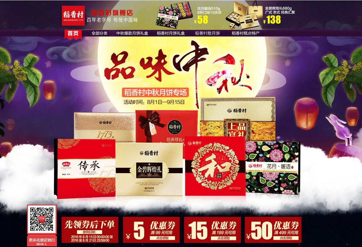 2016年中秋節(jié)前夕,稻香村集團加大了線上線下的推廣活動,京東稻香村旗艦店準備的稻香村月餅禮盒售價從50元-500元不等,滿足不同消費者的差異化需求。另外,稻香村還特意與中青旅合作,開展買稻香村月餅贏取雙人迪斯尼自由行的抽獎活動,各個渠道購買的稻香村月餅禮盒均可通過掃描防偽二維碼識別真?zhèn)?,并參與抽獎。