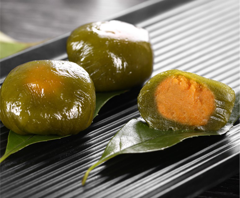 青團(tuán)作為江南地區(qū)寒食節(jié)、清明節(jié)食用及祭掃的傳統(tǒng)小食在長(zhǎng)江三角地區(qū)極為盛行。傳統(tǒng)的青團(tuán)是將新鮮的艾草、青麥取汁和以糯米粉為皮,包以豆沙餡料蒸熟食用。蒸熟的青團(tuán)油綠如玉,糯韌綿軟、清草香混著豆沙的甜蜜,肥而不腴,軟糯香甜。青團(tuán)不僅是中國(guó)傳統(tǒng)美食文化的沿襲,更是春季的健康小食。今年,稻香村集團(tuán)不僅推出豆沙口味青團(tuán),還突破傳統(tǒng)口味的桎梏研發(fā)了蛋黃肉松口味,令傳統(tǒng)中華美食文化加入到暗黑料理界,混搭無(wú)疆界。